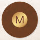 Diese eleganten Rundpapier-Untersetzer zeichnen sich durch ein braunes, texturiertes Imitat-Design mit einer goldenen Erstmarke aus, das dem Tisch eine personalisierte und raffinierte Touch verleiht. Sie sind stilvoll und funktional, ideal für Unterhaltung oder den Alltag.
