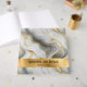 Ein Gästebuch für Hochzeitsfeiern mit einem goldenen, grauen und weißen Marmordesign in den Imitaten.