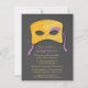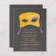 Es ist Zeit für eine Maskerade! Diese Einladung hat eine fantasievolle Goldmaske mit komplizierten Details darauf und Touchs von lila wie das Band und Lash. Die Farbe der Masken kontrastiert gut mit dem dunkelgrauen Hintergrund und es gibt Glitzern um ihn herum. Neben einem Maskenball ist es auch für Mardi Gras oder für Party zum Thema Karneval geeignet! Geeignet für Firmenveranstaltungen oder Abschluss-Bälle. Personalisieren Sie einfach Ihre Party-Details! Beachten Sie, dass das Gold in dieser Einladung digital erzeugt wird und daher nicht leuchtet.