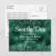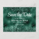 Eine formale, elegante Save the Date Postkarte mit einem Imitat grünen Glitzer und Folie.