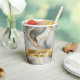 Hochzeitspapier-Tassen mit elegantem Imitat in Gold, Weiß und Grau-Marmor-Design.