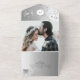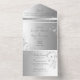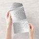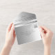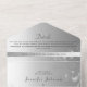Eine luxuriöse und elegante Einladung zur Hochzeit, die moderne Eleganz mit silbernen Imitaten verbindet. Mit böhmischen Vintagen Blumen, einem Monogramm an der oberen Klappe und anmutiger moderner Kalligraphie geschmückt, präsentiert dieses Design das Foto des Ehepaares schön. Personalisieren Sie es mit Ihrem eigenen Foto, Hochzeitsdetails und UAWG für eine wirklich einzigartige und raffinierte Einladung.