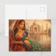 Elegante indische Frau mit prachtvollem Pfau Postkarte