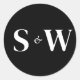 Elegante Initialen Schwarz/Weiß Hochzeit Runder Aufkleber