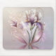 Mauve und weiße Iris-Blume mit aufwändigen Details sind goldfarben und mit Tau-Tropfen verziert