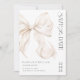 Elegante Ivory Bow Save the Date Card Mit dieser raffinierten "Save the Date" Karte mit einem wunderbar illustrierten Elfenbeinsatin-Bogen kündigen Sie Ihren besonderen Tag stilvoll an. Das Design verbindet eine zeitlose neutrale Farbpalette mit moderner Typografie und schafft ein luxuriöses und romantisches Ambiente.