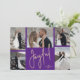 Weihnachtskarten mit mehreren Fotos sind mit Ihren Namen und dem Wort "Joyful" in schicker Schrift auf einem lila Hintergrund versehen. Laden Sie einfach Ihre Lieblings-Fotos hoch und fügen Sie Ihre Personalisierung auf der Rückseite hinzu. Wählen Sie High Definition für beste Foto-Qualität. Der Live Design Service hilft Ihnen bei der Gestaltung Ihrer Fotos.