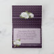 Elegante weiße Rosen in voller Blüte auf der lila Hochzeitskarte mit personalisierten Namen und Jahr. Personalisieren Sie die Namen Jahr und innerhalb Vers in der Vorlage bereitgestellt. Original Fotografie und Design von Anura Design Studio 2010.