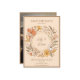 Diese Save the Date Karte zeichnet den Vintagen Charme des Jugendstils aus, mit einem minimalen Blumenkranz, der ein elegantes Drehbuch umgibt.