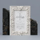 Eleganter, moderner und zarter verzierter Rahmen mit aufwändigen Blumenmustern, vor allem Rose, durchschnitten. Der Rahmen ist einfarbig und verleiht ihm ein klassisches, elegantes Aussehen. Es hat eine dreidimensionale Qualität, Einladung Hochzeit, dass Sie mit Ihren Informationen anpassen können, um es zusätzlich zu besonderen machen. Das romantische minimalistische Design besticht durch eine hübsche und elegante Kalligraphie auf einem schönen Hintergrund mit einem sauberen und schlichten Look.