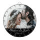 Elegante Kalligrafie Hochzeitsstichtag Foto Schwarz/Weiß Datum und Name Dart Board