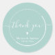 NewParkLane - Ausgereifte, aber einfache, personalisierte Hochzeitsticker mit "Danke" in eleganter Schriftzeichen-Typografie/Kalligrafie mit Wirbel, einem kleinen weißen Herz und einem gepunkteten runden Rahmen, vor einem aquamarinen grünen Hintergrund. Ein elegantes und stilvolles Design, um Ihren Gästen für ihre Hochzeit zu danken. Einfache Anpassung in Zazzle mit eigenem Text für ein personalisiertes Design. Alle Textstile, Farben und Größen können an Ihre Bedürfnisse angepasst werden, ebenso die Hintergrundfarbe. Karo diese Auflistung für passende Elemente aus. Haben Sie spezielle persönliche Designwünsche? Nehmen Sie Kontakt mit mir auf.
