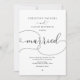 Modernes, schwarz-romantisches Kalligrafieschrift, Einladungskarte für einfache Hochzeitsfeier.