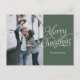 Elegante Kalligraphie Frohe Weihnachtsfeiertagskarte mit familiärem Foto. Mit seinem eleganten Kalligrafieschreiben mit Khaki-Weihnachtshintergrund.