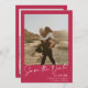 Elegante Skriptkalligraphie einfach 2 Fotos rosa Magenta und weiße Hochzeit speichern das Datum.