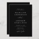 Elegante Einladungen für Hochzeiten mit Namen und Hochzeitsdetails in weißer Schrift mit schwarzem Hintergrund. Ein modernes Kalligrafieschrift vervollständigt das Aussehen dieser vielseitigen Schwarz-Weiß-Einladung. Diese einfache Hochzeitseinladung eignet sich sowohl für feierliche als auch für lässige Hochzeiten zu jeder Jahreszeit.