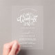 Diese elegante Acrylhochzeit lädt mit romantischer Kalligrafie und einem klassischen weißen Design zu zeitlosen und anspruchsvollen Hochzeiten ein. Die klare Oberfläche verleiht dem Ganzen eine Touch Luxus und behalte gleichzeitig den Schwerpunkt auf die anmutigen Details. Anpassbar an Stil und Vision.