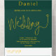 Dieses elegante, grüne und goldene Hochzeitsangebot eignet sich perfekt für eine moderne Hochzeit, das schlichte Design zeichnet sich durch elegante goldene Kalligraphie auf grünem Hintergrund aus.