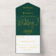 Elegante kalligraphische Grün- und Goldhochzeit All In One Einladung