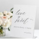 Schauen Sie sich diese elegante moderne romantische Kalligrafie Hochzeitskerzenfavoriten "Liebe ist süß" stehendes Schild auf Ihrem Geschenktisch an. Dieses elegante Geschenkschild eignet sich perfekt für eine romantische Hochzeit. Weitere Produkte finden Sie unten.