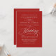 Eine wunderbar elegante und romantische Hochzeitseinladung mit silbernen Kalligraphie-Script-Akzenten über einem reichen roten Hintergrund. Die schlichten, geschmackvollen Werke zusammen mit der reichen roten Farbe machen es zu einer beliebten Wahl für Hochzeiten rund um den Weihnachtsfeiertag oder den Valentinstag. Entsprechende RSVP-Karten und andere Hochzeitsprodukte sind in diesem Design erhältlich.