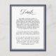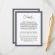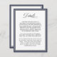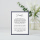 Diese einfache, elegante Hochzeitskasse ist so konzipiert, dass Sie Ihren geladenen Gästen besondere Details und Informationen rund um Ihren Hochzeitstag bieten können. Die weiße Karte ist in marineblau mit einer dünnen schwarzen Linie umrahmt, um dem Design ein wenig Farbe zu verleihen. Sie können diese Eintrittskarte verwenden, um Ihnen die empfohlenen Hotelinformationen, die Fahrpläne, Ihr Hochzeitsregister, Ihre Hochzeitswebsite und weitere Details zu geben, die Sie angeben möchten. Editieren Sie einfach die Beispieltextvorlage mit Ihren Informationen. Sie können den Text verschieben, den Schriftart sowie die Hintergrundfarbe dieser Karte ändern.