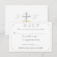 Die Design-Vorderseite zeigt Ihren Text im klassischen Format für eine katholische Hochzeitskarte und ist gerahmt mit einem eleganten silberfarbenen Rahmen. Die Position wird oben in einem eleganten Nuptial-Schriftart angezeigt, gefolgt von der Anfrage. Es stehen zwei Optionen zur Verfügung, zusammen mit einem Ort, an dem der Empfänger in der Anzahl der Party schreiben kann. Ihre Dankesbotschaft wird unten angezeigt. Reverse zeigt das Bild eines silberfarbenen Kreuzes mit verbundenen Hochzeitsringen. Monogramm Braut und Bräutigam wird in einem leicht transparenten Schriftart dargestellt. Die Vorder- und Rückseite sind in reinweiß gehalten. Konzipiert, um sich mit der "eleganten katholischen Mit Monogramm Hochzeitssuite" abzustimmen.