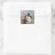 ELEGANTE KATZE MIT GROSSEM DIVA HAT,PINK ROSES QUADRATISCHER AUFKLEBER