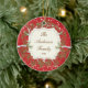 Die einzigartige Familien-Weihnachtsverzierung, die einen schönen Schnee kennzeichnet, umfaßte Kiefernbaumniederlassungs-Rahmen-Set auf einem roten Hintergrund. Personifizieren Sie mit Ihren Informationen und Datum und Sie sind alles Set, zum zu gehen! Wunderbares datiertes Andenkengeschenk für Ihr erstes Weihnachten und ein großer Zusatz zu Ihnen Weihnachtsverzierungssammlung.