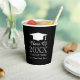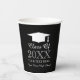 Elegante Klasse von 2022 Senior Name Graduation Party Paper Cups. Personalisieren Sie mit Ihrem eigenen Namen und Ihren eigenen Farben. Schwarz-Weiß-Design mit Tassel-Cap-Ikone und stilvollem Typografie-Template.