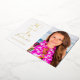 Die elegante Einladung zur Graduiertenparty in Gold und Weiß enthält eine Goldfolie-Typografie, die auf weißem Hintergrund lautet: "Klasse des [JAHR] Graduates". Ersetzen Sie das Beispiel-Foto durch einen Ihrer Absolventen und passen Sie das Jahr und den Namen an. Auf der weißen Rückseite der Einladung steht das Wort "feiern" in einem schwarzen Script-Schriftart. Ersetzen Sie den schwarzen Beispieltext für Ihren Absolventen und das Ereignis. Personalisieren Sie es für jeden Absolventen: High School, Uni, Graduiertenschule, Jura Schule, Medizin oder Fachschule. Wenn Sie Probleme mit der Platzierung oder Größensortierung Ihres Fotos haben, klicken Sie bitte auf den Knopf "Anpassen" und verwenden Sie das Designwerkzeug, um es zu vergrößern/zu verkleinern oder zu verschieben. Copyright ©Claire E. Skinner ohne Beispiel-Foto. Alle Rechte vorbehalten.