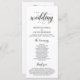 Elegantes schwarzes Skript, Hochzeitsfeier Programmkarte. Es ist mit Scrollakzent entworfen, der personalisiert werden kann mit benutzerdefiniertem/personalisiertem Text für Ihr Brautparty, Zeremonie Details, Gedenkhinweise und Dankeschön-Nachricht. Wenn Sie weitere Programmkarten-Typen und -Größen suchen, durchsuchen Sie bitte unseren passenden Programmkartenabfrageabschnitt.