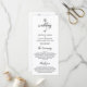 Elegantes schwarzes Skript, Hochzeitsfeier Programmkarte. Es ist mit Scrollakzent entworfen, der personalisiert werden kann mit benutzerdefiniertem/personalisiertem Text für Ihr Brautparty, Zeremonie Details, Gedenkhinweise und Dankeschön-Nachricht. Wenn Sie weitere Programmkarten-Typen und -Größen suchen, durchsuchen Sie bitte unseren passenden Programmkartenabfrageabschnitt.