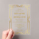 Stellen Sie Ihren Gästen mit unserer atemberaubenden, transparenten Acrylhochzeit Ihren luxuriösen und anspruchsvollen Hochzeitstag vor. Dieses Design ist in durchsichtigem oder mattiertem Acryl erhältlich und besticht durch moderne Eleganz und zeitlose Eleganz. Der wunderschöne Goldrahmen der Imitate verleiht dem Ganzen eine Touch Raffinesse und schafft so einen atemberaubenden ersten Eindruck. Bitte beachten Sie, dass das goldene Detail ein bedrucktes Design ist, das das Aussehen von metallischem Gold ohne den Einsatz von realer Folie anbietet und so ein schlankes und poliertes Aussehen gewährleistet. Passen Sie diese Einladung einfach online an, um Ihre einzigartige Liebe-Geschichte perfekt zu reflektieren. Ob Sie eine opulente Abend-Feier oder eine schicke minimalistische Veranstaltung veranstalten, dieses vielseitige Design Set den Ton für Ihren unvergesslichen Tag. Mit dieser exquisiten Acryleinladung, die für Paare konzipiert ist, die Eleganz, Qualität und eine moderne Touch schätzen, machen Sie Ihren besonderen Tag unvergesslich. Beginnen Sie noch heute mit der Personalisierung Ihrer Traumhochzeit!