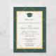 Klassische formelle elegante Stil dunkelgrünen und weißen Graduierungsparty Einladung mit einem goldenen geometrischen Rahmen und Grau Hut.