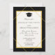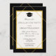 Klassische formelle elegante Stil Schwarz-Weiß Graduierungsparty Einladung mit einem goldenen geometrischen Rahmen und Grau Hut.