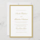 Mit dieser eleganten, klassischen Gold-Feierlichkeiten kündigen Sie Ihren besonderen Tag im zeitlosen Stil an. Diese Einladung ist für Paare gedacht, die raffinierten Luxus schätzen. Sie verfügt über ein exquisites Goldskript, das mit einer zarten Grenze verbunden ist und einen raffinierten und regelmäßigen Look schafft. Dieses Design ist perfekt für Schwarz-Krawatte-Events, Hochzeiten und Hochzeitsfeiern geeignet und Set für ein unvergessliches Erlebnis.