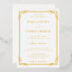 Diese klassische Hochzeitseinladung besticht durch ein elegantes Gold-Weiß-Design. Der elegante Stil der Einladung wird durch eine luxuriöse Goldgrenze und stilvolle Schriftart unterstrichen, die ein Gefühl zeitloser Eleganz vermitteln. Diese formelle und traditionelle Einladung verleiht dem Gast das Gefühl, sich an einem besonderen Tag geehrt und empfangen zu fühlen, mit einem Empfang, der der Zeremonie folgt. Das Design spiegelt das Wesen einer raffinierten und eleganten Hochzeitsfeier wunderbar wider.