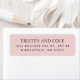 Klassische Rücksendeadressen-Aufkleber, schwarze Serifen und serifenlose Schriftart auf einem rot-rosa Hintergrund. Halten Sie an der verlassen Vorder- oder Rückseite der Umschläge und Kleinpackungen fest.