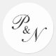Elegante, klassische Schwarz-Weiß-Monogramm-Hochze Runder Aufkleber