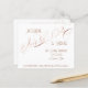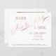 Save the Date im Budget. Dieses Design verfügt über einen eleganten handkalligraphischen Schriftart mit wirlen Schnörkeln und Ihre Informationen in einem Art-Déco-Schriftart-Template. Rose Gold-Folie wird auf dem Kalligrafietext mit weißem Hintergrund verwendet (Farbe kann geändert werden). Grafisch entworfen von Audrey Jeanne Roberts, international lizenzierter Künstlerin und Designer, Copyright.