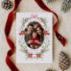 Die elegante Urlaubskarte mit atemberaubendem Wintergartendesign. Wenn Sie eine Ferienkarte suchen, die Eleganz, Luxus und Stil ausstrahlt, dann ist dies die perfekte Karte für Sie. Der Kranrahmen verleiht der Karte eine Touch Vintager Eleganz. Es zeichnet sich durch ein kompaktes, grün und rot-winterfarbenes botanisches Aquarellbild aus, das zeitlos und einzigartig ist und Ihre Urlaubskarte von der Erholung abhebt. Auf der Rückseite finden Sie genügend Platz, um Ihren Freunden und der Familie Ihre persönlichen Weihnachtswünsche hinzuzufügen.