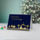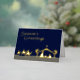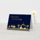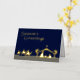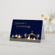 Einfach aber dennoch elegant. Die Grüße der Jahreszeit und eine Krippe, die drei weise Männer umfasst, sind in Goldfolie vor einem Hintergrund tiefblauer Farben gehalten, die einen Nachthimmel und beigen Sand darstellen. *****Füllen Sie die Innenseite mit Ihrer eigenen personalisierten Weihnachtsbotschaft und Unterschrift aus. Die Farbgröße und der Schriftstil der Nachricht/Signatur des Schriftartes können in Anzug geändert werden.