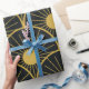 Das ist elegante Art Deko goldenes abstraktes Sonnenmuster auf schwarzem Hintergrund. Es ist großartig aussehendes Papier für Geburtstage und Jahrestage