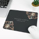 Das schicke, personalisierte Mousepad der Insel für Ihr Business oder Zuhause-Büro verfügt über zwei Textzeilen in klassischer Weißschrift, auf einem weichen schwarzen Hintergrund mit zwei Blume-Illustrationen in tropischen Hibisken in Imitaten Kupferfolie für ein Beachglam-Look.