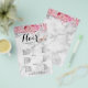 Modernes und elegantes Design für Friseursalons mit Imitaten aus Kupfer-Rose-Goldschere, Rosa und Weiß-Rosen, weißem Marmorhintergrund und elegantem Kalligraphie-Schriftart.