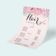 Modernes und elegantes Preislisten-Design für Friseursalons mit Imitaten Kupfer-Rose-Goldschere, Rosa und Weiß-Rosen und elegantem Kalligraphie-Schriftart.