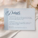 Teilen Sie alle wichtigen Informationen für Ihren besonderen Tag mit unserer eleganten "Blue Stripe Enclosure Card". Mit einem hellblauen Hintergrund mit klassischen, mittelblauen Streifen und einer ausgeklügelten marineblauen Typografie eignet sich diese Karte hervorragend, um die Route des Veranstaltungsortes, die Unterkunft oder weitere Hochzeitsdetails zu vermitteln. Es ist so konzipiert, dass es Ihr Hochzeitsthema an der Küste oder im Wassersport ergänzt und bietet eine gepflegte und stilvolle Möglichkeit, Ihre Gäste auf dem Laufenden behalten. Personalisieren Sie es mit Ihren einzigartigen Details, um eine nahtlose Feier zu gewährleisten!