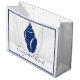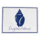 Elegante blaue Muschel-Silhouette und dünn blaues Skript-Sprichwort "Herzlichen Glückwunsch" große Geschenktasche.