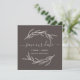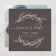 Eleganter Lorbeerblattkranz in zartem Beige, Skriptkalligraphie, klassische Typografie und Ihr Lieblingsstift auf der Rückseite mit verstaubtem Braun.